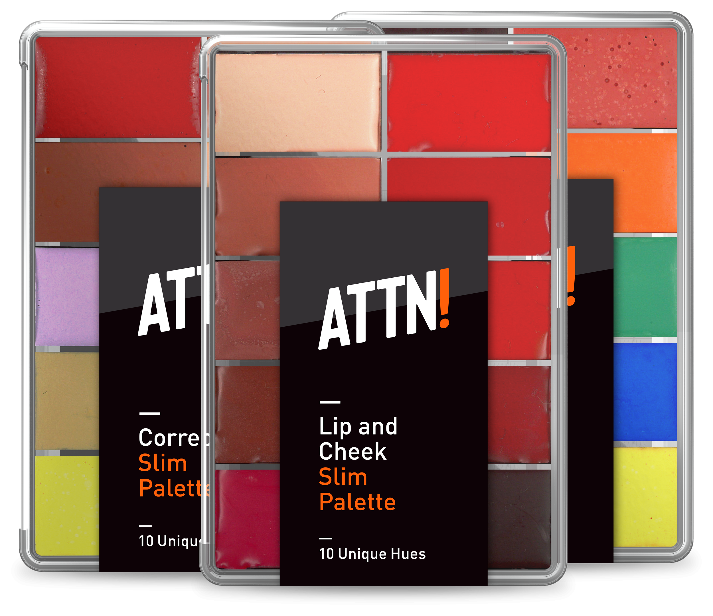 we wanted to have fun with color. We manufactured a trio of Slim Palettes from which an entire “face” can be created.